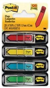 3M 684-SH POST-IT MINI MESSAGE FLAGS SIGN HERE 12MM X 43MM ASSORTED COLOURS 120 FLAGS PER PACK.