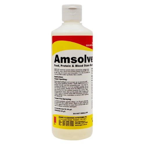 AMSOLVE is a carpet stain remover for hard-to-shift spots and spills caused by orange juice, soft drinks, wine, blood and protein-based foodstuffs such as milk, egg, ice-cream and chocolate