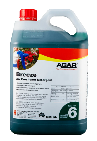 Breeze is a strong odour-masking deodoriser, formulated for washing and mopping heavily contaminated floors and hard surfaces where a powerful residual perfume is desired
