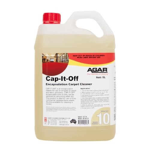 CAP-IT-OFF is an encapsulation cleaner for use on all types of carpet and washable fabric upholstery