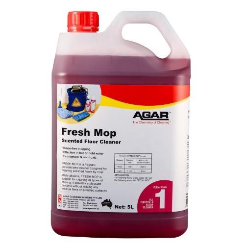 Fresh Mop is a lemon-scented mildly alkaline cleaner that will remove fats, oils, dirt, spillages, vehicular road dirt, floor traffic, soilage and spills of all kinds from all hard surfaces, polished floors, tiles, fittings, windows, ducting, walls and paintwork