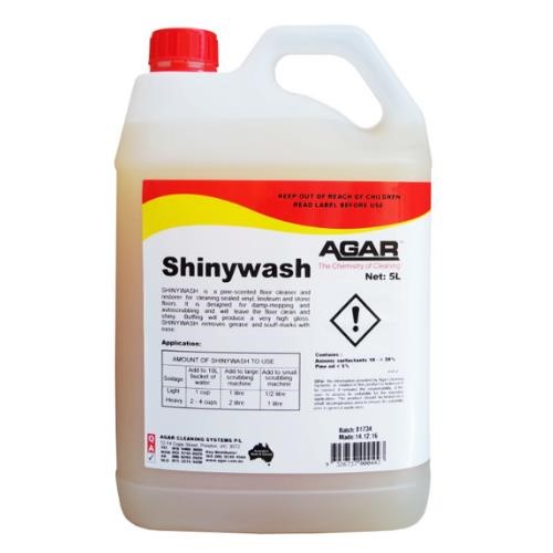 SHINYWASH is a pine-scented floor cleaner and restorer for cleaning sealed vinyl, linoleum, and stone floors