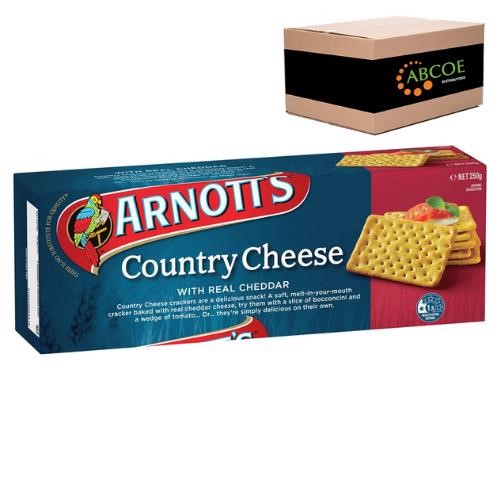Country Cheese crackers are a delicious snack! A soft, melt-in-your-mouth cracker baked with real cheddar cheese, try them with a slice of bocconcini and a wedge of tomato.