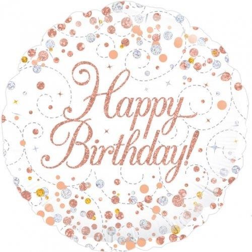 Balloon Foil 18" Happy Bday Sparkling Fizz Rose Gold Uninflated