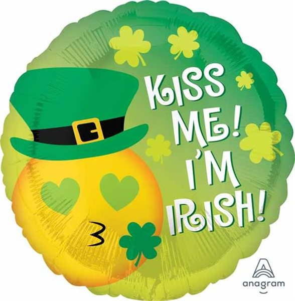 BALLOON FOIL 18" ST PATS KISS IRISH UNINFLATED
