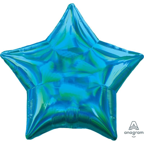 BALLOON FOIL 19" IRIDESCENT CYAN STAR UNINFLATED