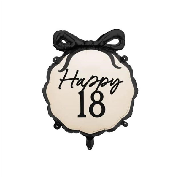 Balloon Foil 22" Happy 18th Bow BW Uninflated