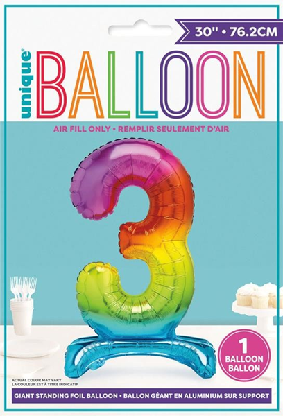 Rainbow "3" Giant Standing Air Filled Numeral Foil Balloon 76.2cm (30")