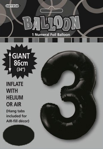 Balloon Foil 34" Black 3 Uninflated