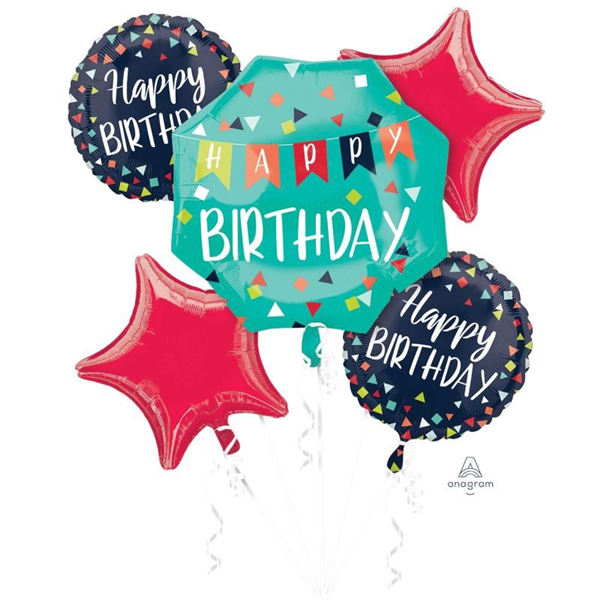 Balloon Foil Bouquet HBD Celebate 5/Pk Uninflated