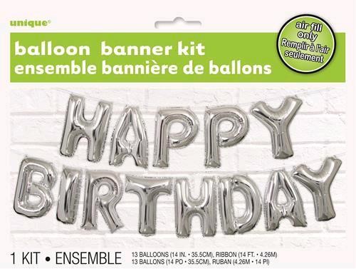 Balloon Foil Letter Kit "Happy Birthday" Silver
