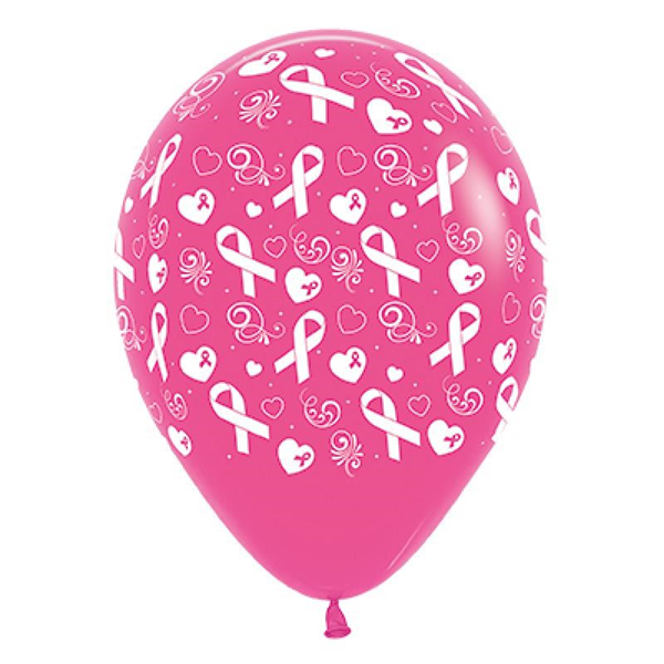 Balloons Printed Pink Ribbon Fuchsia 6pk