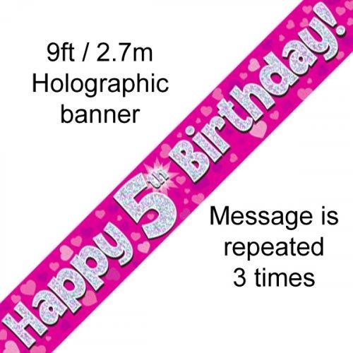 Banner Foil 5th Pink Happy Birthday Oakwood