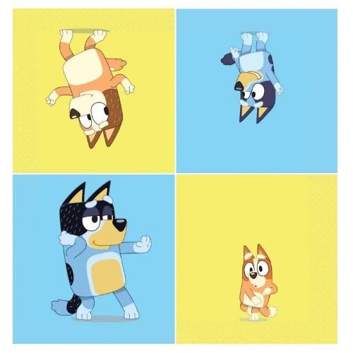 Pack of 16 small napkins with a playful Bluey and Bingo Design