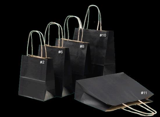 These petite sized black carry Bags are strong and sturdy with a brown kraft twisted Paper handle