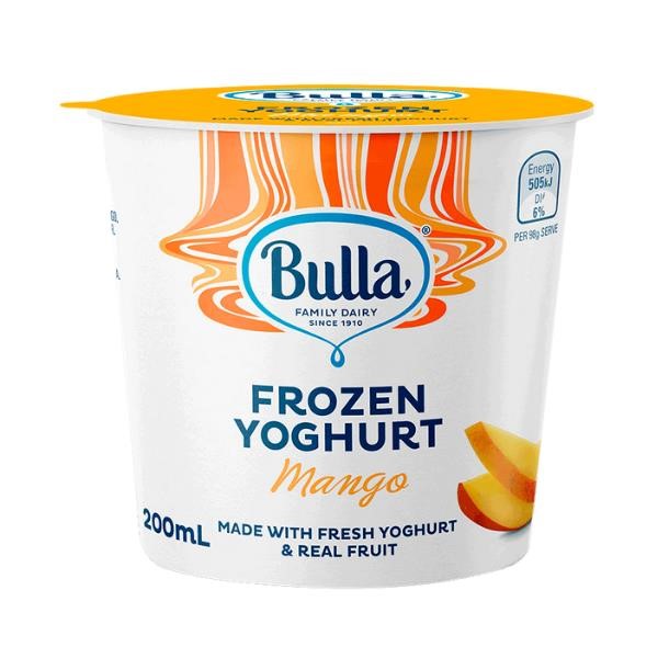 Bulla Frozen Yoghurt cups are made with fresh yoghurt, are 97% fat free and are still free of artificial colours or flavours