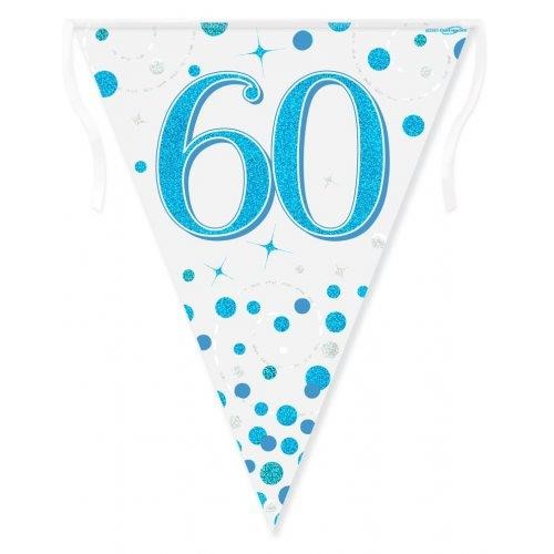 Bunting 60th Birthday Spark Fizz Blue 3.9m