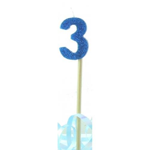 Candle #3 Long Pick Blue Glitter