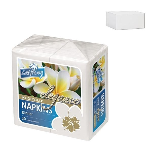 Castaway Napkin Dinner Elegance Redi Fold White 500/CTN