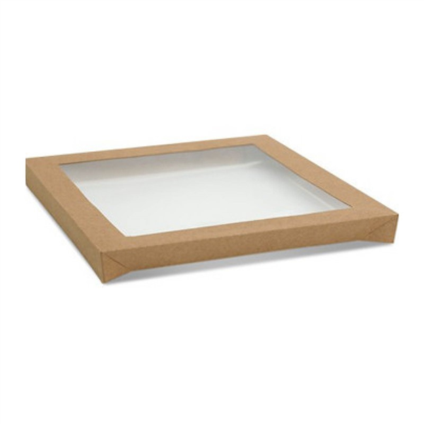 Made from all-natural paper cardboard material, with a centred transparent PET sleeve to allow you to showcase your foods – making the lid recyclable