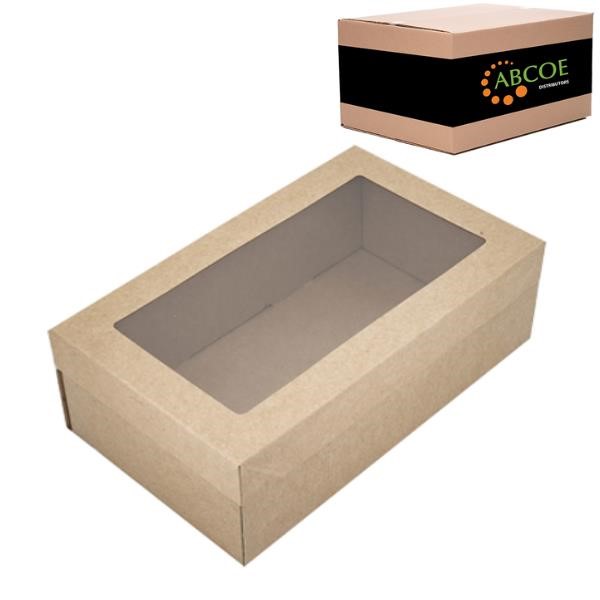 Made from brown kraft paper with a clear plastic window, these catering boxes are not only environmentally friendly but also stylish and sleek looking
