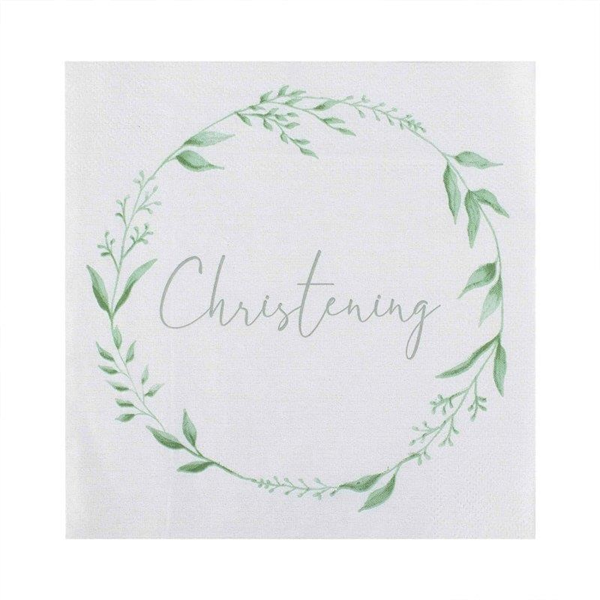 CHRISTENING PAPER NAPKINS GREEN AND WHITE
