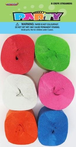 Crepe Streamer Assorted 12M 6 Pack