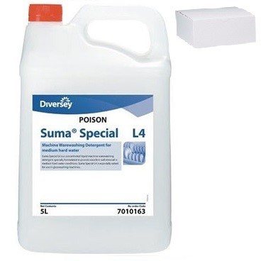 Suma Special L4 is a concentrated liquid mechanical ware washing detergent specially formulated to provide excellent soil removal in soft to medium hard water conditions