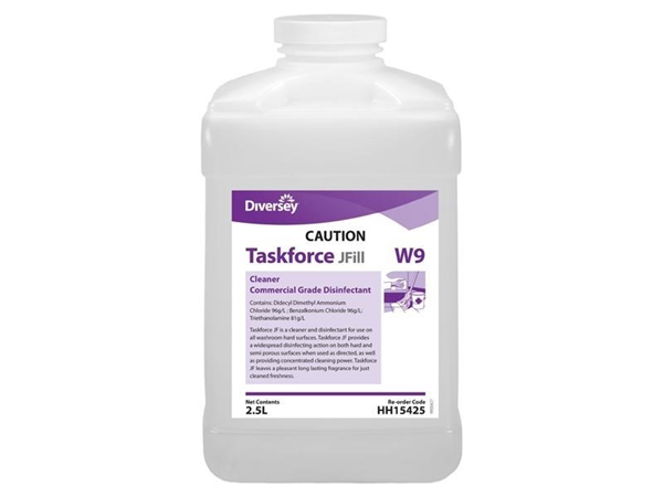 This Diversey™ Taskforce Jfill is a commercial grade disinfectant for use on all public washroom and bathroom hard surfaces