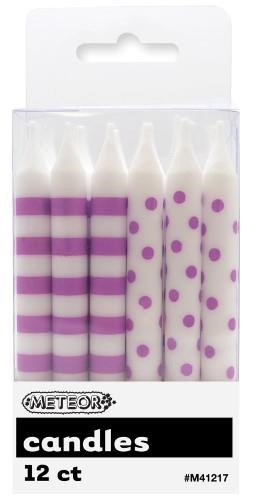Dots & Stripes Candles Purple 12/ Pack