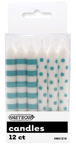 Dots & Stripes Candles Teal 12/ Pack