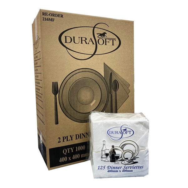 Durasoft Napkin Dinner White 2Ply 125/Pk 8/Ctn