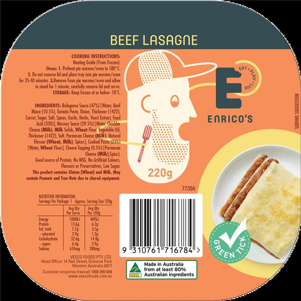 Layers of fresh pasta with lean beef, tomatoes, onion, carrots, spices and herbs covered with a creamy style mornay sauce and topped with cheese