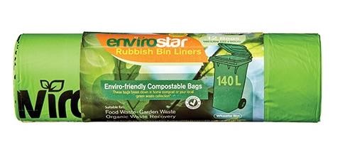 Envirostar Garbage Bag Compost Green 140L 12/Roll