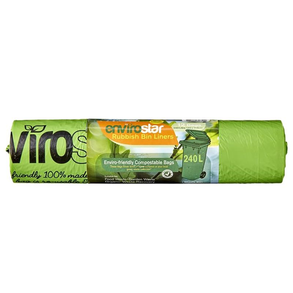 Envirostar Garbage Bag Compost Green 240L 12/Roll