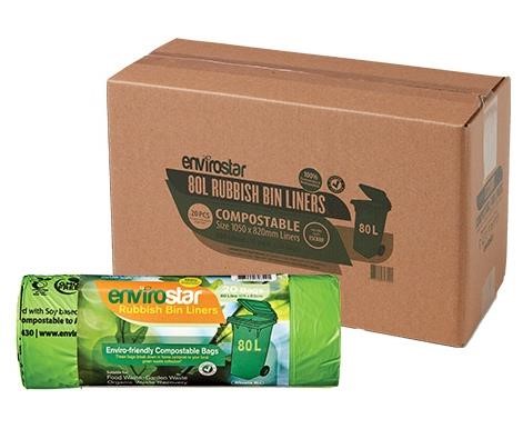 Envirostar Garbage Bag Compost Green 80L 20/Roll 10/CTN
