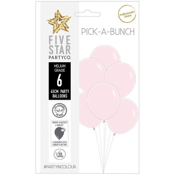 Five Star Balloons 45Cm Pastel Pink 6/Pk