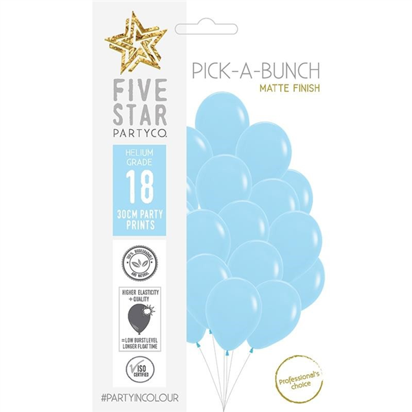 Five Star Balloons Matte Pastel Blue 30Cm 18/Pk