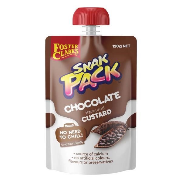 A chocolate flavoured custard in a convenient pouch - what's not to love? Foster Clark's Snak Pack Chocolate Flavoured Custard is a lunchbox friendly custard