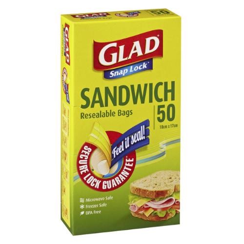 Glad Snap Lock Resealable Bags Sandwich Size 50/PK