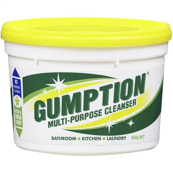 Gumption is a smooth paste cleanser suitable for most surfaces, removes tough dirt and grease.Gumption is a smooth paste cleanser.Use Gumption to clean baths, basins, tiles, stainless steel sinks or cookware, ceramic and enamel cooktops, laminate benchtops, vinyl floors, fibreglass, hard plastics and other similar surfaces.