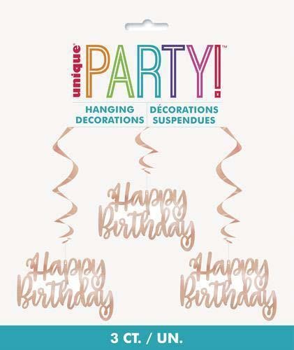 Hanging Swirls Rose Gold Happy Birthday 3/ Pack