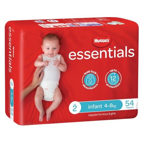 Huggies Essentials Nappies Infant 54/PK 4-8kg Size 2