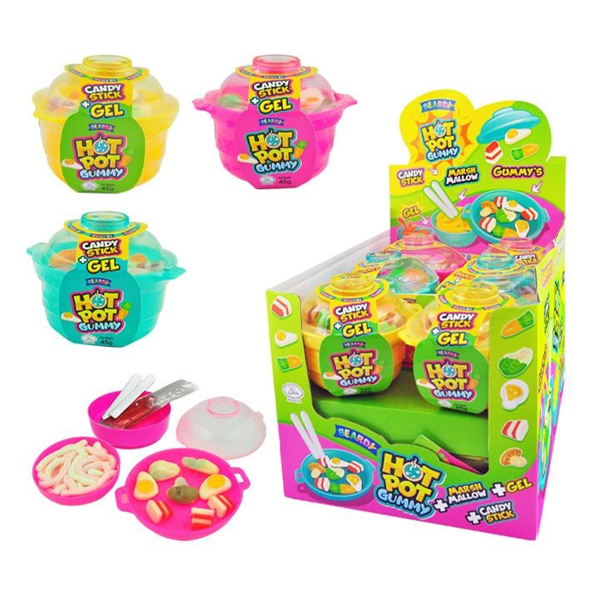 This delightful candy hot pot features candy stick chopsticks, gummy ingredients, marshmallow noodles and gel sauce all in a reusable pot! Gluten Free.