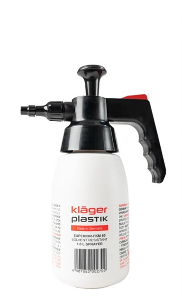 (also known as the Klager Plastik 1.0?L Solvent Resistant Industrial Sprayer) is a rugged, chemical-resistant pressure bottle expertly engineered for hazardous hydrocarbon-based solvents