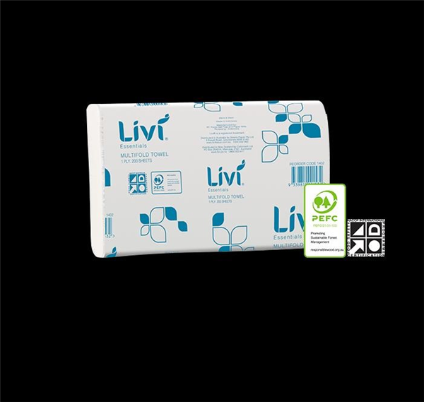 Livi Hand Towel Essentials Multifold Hand Towel 1PLY 200SH 1402
