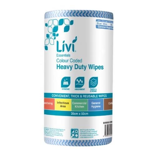 Avoid cross contamination with colour coded absorbent wipes for reuse in demanding applications or tackle the tougher tasks with the Livi heavy duty industrial spec turbo wipes