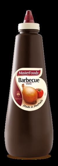 MasterFoods Barbecue Sauce, is a traditional BBQ sauce with a combination of ripe red tomatoes, onions and selected spices in a squeezy sauce bottle