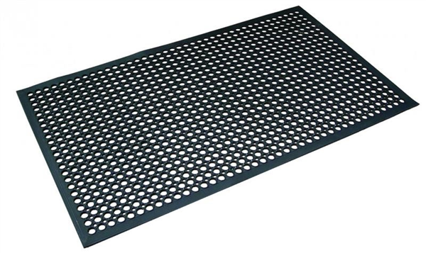 The honeycombed patterned surface provides traction when the mat is being walked on, and the large holes allow for rapid drainage of any spilt liquids