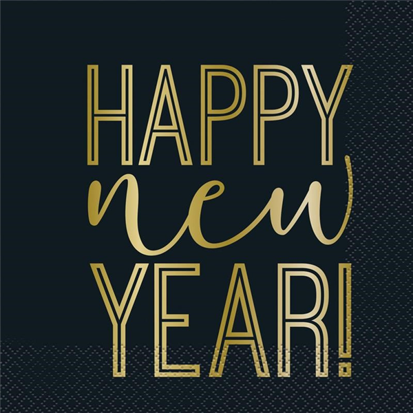 New Years Napkins Lunch Black & Gold 16/ Pack